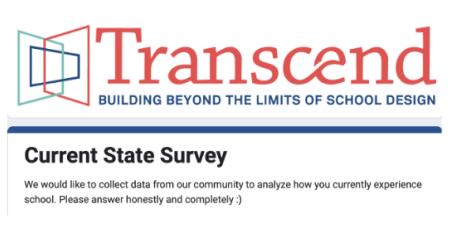 The Current State survey designed to assess how students currently experience school gathers crucial feedback on their daily realities, making it essential for amplifying student voice and informing choices that align with their needs and preferences in the school design process.